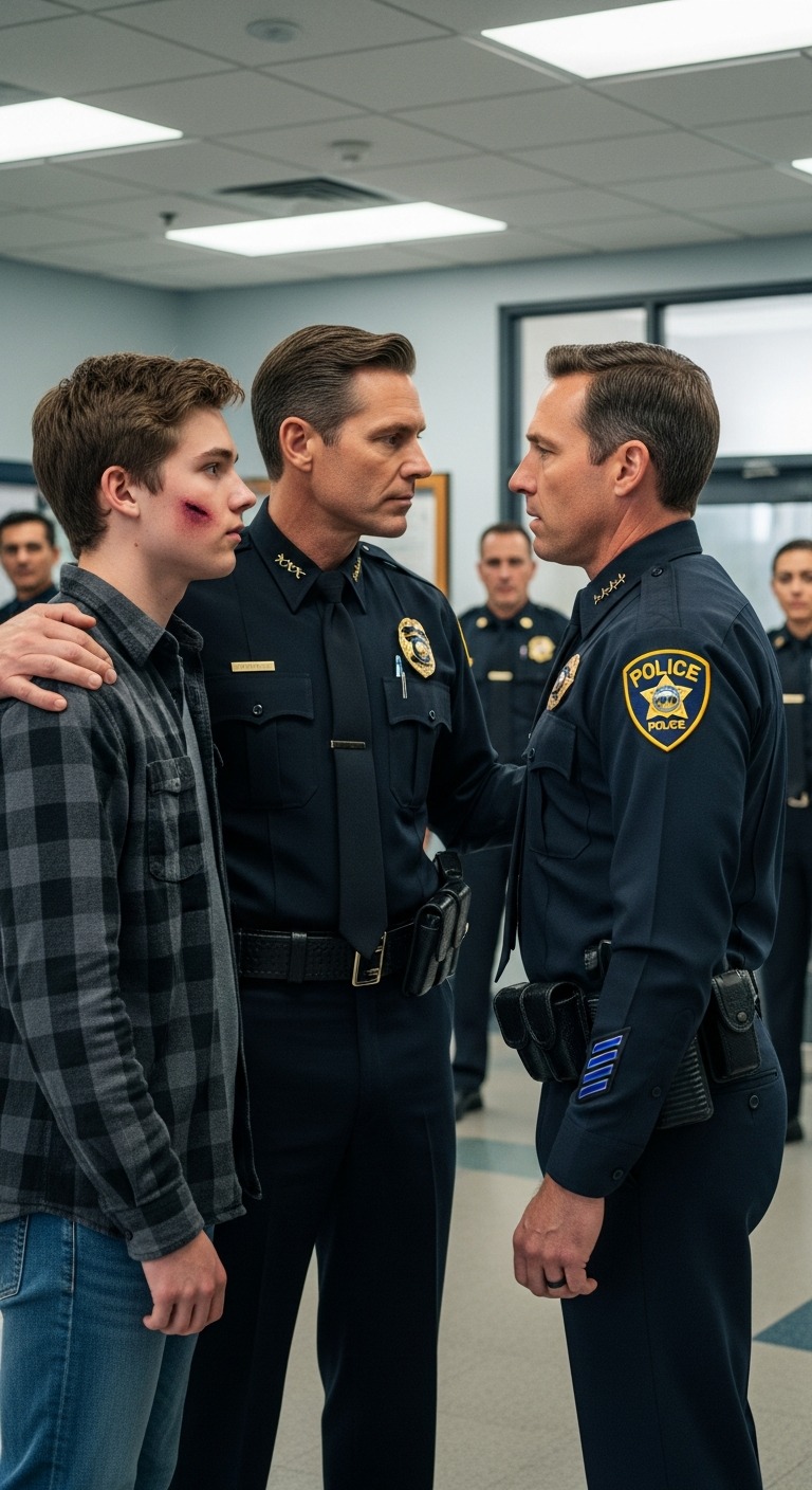 Ο γιος μου τηλεφώνησε από το αστυνομικό τμήμα: «Μπαμπά, ο πατριός μου με χτύπησε και υπέβαλε ψευδή καταγγελία. Οι αστυνομικοί τον πιστεύουν». Ρώτησα ποιον αστυνομικό—«Λοχία Μίλερ». Είπα, «Μείνε στη θέση σου. Είκοσι λεπτά». Δεν κάλεσα δικηγόρο. Μπήκα μέσα φορώντας τη στολή μου. Ο λοχίας χλόμιασε. Ρώτησα ήρεμα, «Δώσε μου δεκαπέντε λεπτά μόνος με τον πατριό του». Το δωμάτιο πάγωσε…